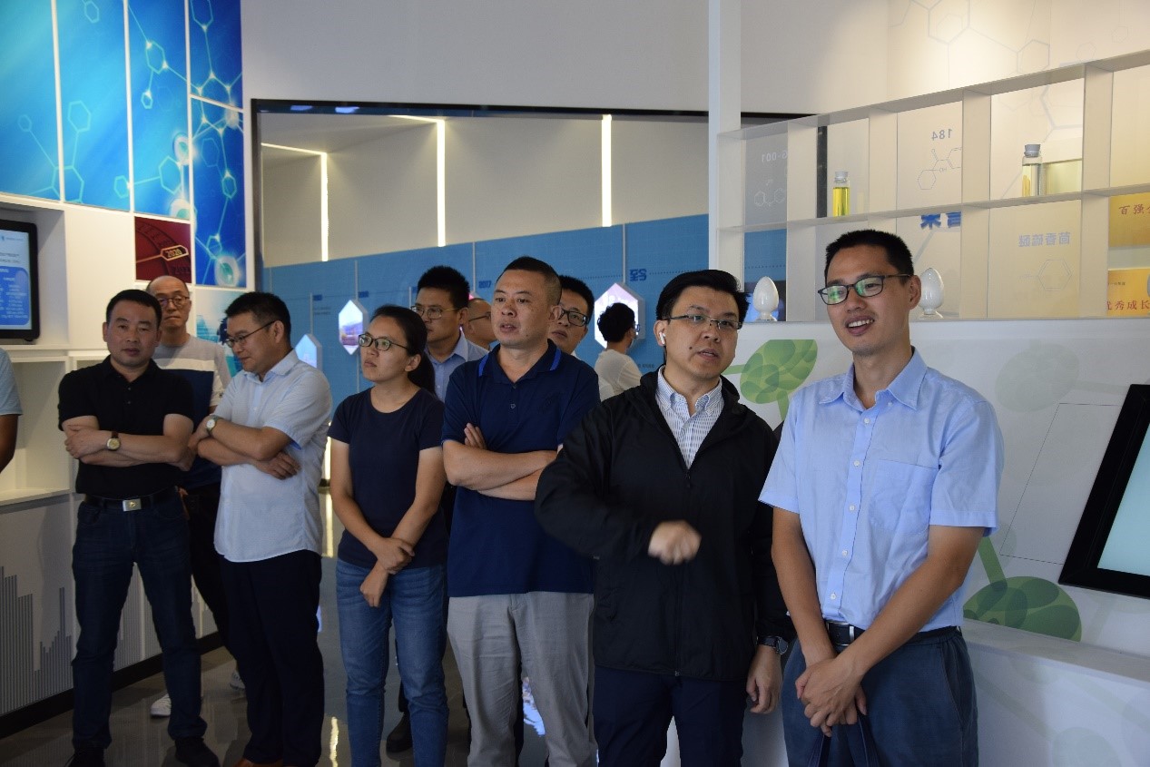 考察團(tuán)一行先是參觀了企業(yè)發(fā)展(產(chǎn)品)展示廳和黨建展廳。樊彬董事長(zhǎng)向各位領(lǐng)導(dǎo)就公司發(fā)展歷程、企業(yè)文化、產(chǎn)品工藝流程、設(shè)備裝置、市場(chǎng)前景及黨建工作情況等作了簡(jiǎn)要介紹。并對(duì)上虞生產(chǎn)基地目前的主要產(chǎn)品、未來(lái)發(fā)展規(guī)劃、競(jìng)爭(zhēng)優(yōu)勢(shì)、人才戰(zhàn)略方面及化工制造業(yè)工藝升級(jí)工作做了重點(diǎn)匯報(bào)。雙方就目前社會(huì)、經(jīng)濟(jì)形勢(shì)下精細(xì)化工、新材料、光固化等領(lǐng)域的發(fā)展情況、所遇到的問(wèn)題及解決方法作了深入的交流。